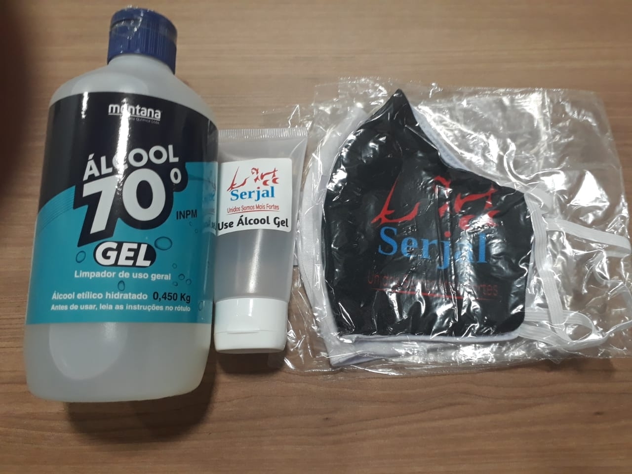 O SERJAL já disponibilizou em pontos estratégicos do estado, para distribuição aos seus filiados e filiadas, o kit de proteção contra o coronavírus, composto por duas máscaras de tecido (laváveis), uma embalagem de 500 ml de álcool em gel e uma bisnaga para levar o produto na bolsa ou no bolso.