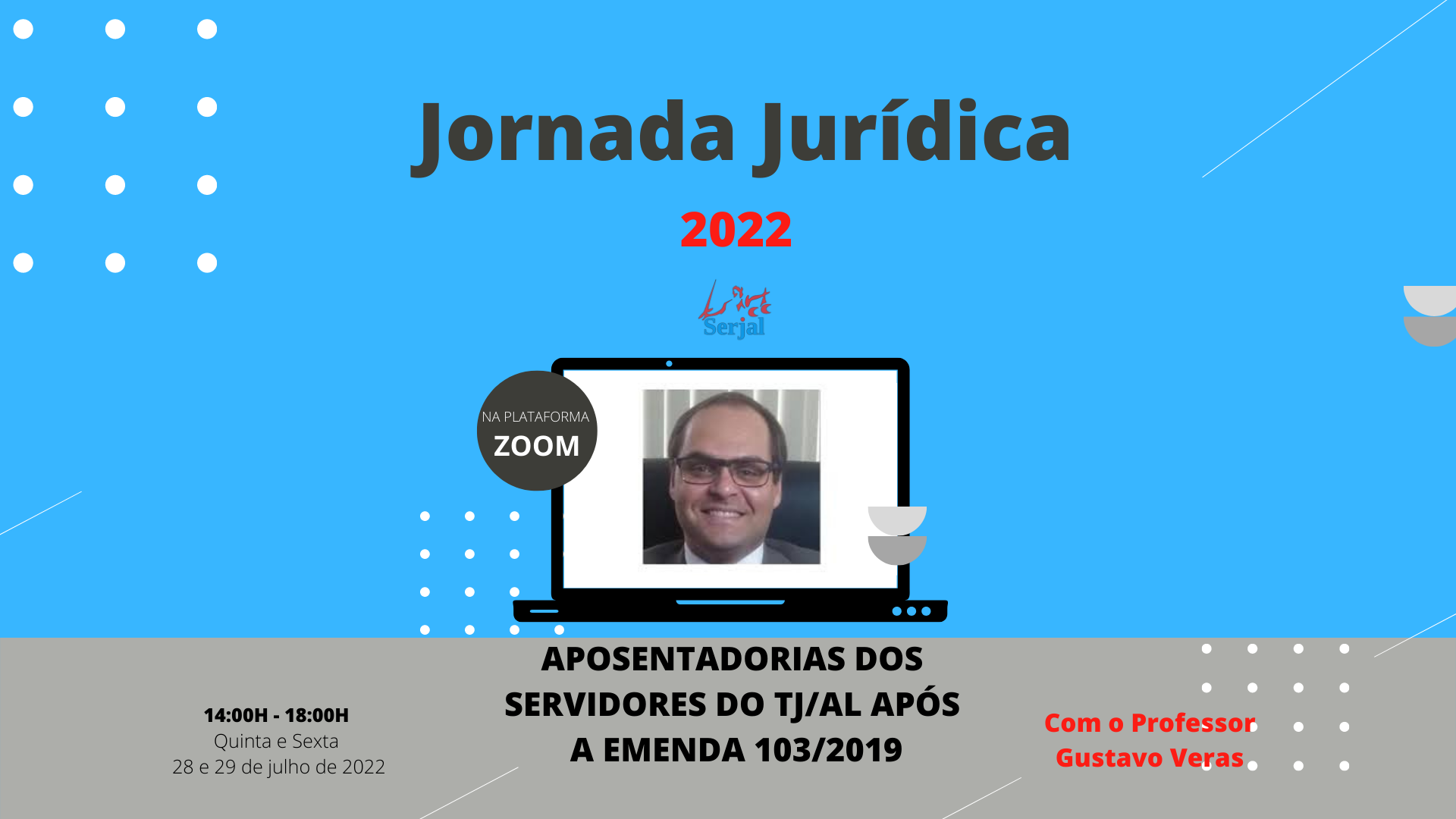 O curso está sendo organizado pela diretoria jurídica do SERJAL e será ministrado pelo advogado e professor Gustavo Veras , em ambiente virtual - pela plataforma Zoom - no horário das 14 às 18 horas, nos dois dias, e faz parte das demandas originadas do Planejamento Estratégico aprovado na última Assembleia Geral do Sindicato.