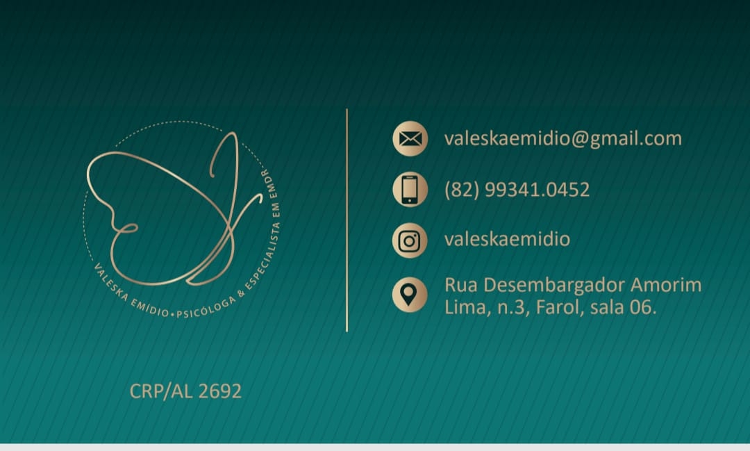 Psicóloga desde 2007, pela Universidade Federal de Alagoas e especialista em Terapia EMDR, Eye Movement Dessensitization and Reprocessing, que em português significa Dessensibilização e Reprocessamento através do Movimento dos Olhos, é uma NOVA ABORDAGEM PSICOTERAPÊUTICA que desbloqueia memórias dolorosas através de estimulação bilateral do cérebro que podem ser também auditivas ou táteis.