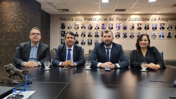 O presidente do Tribunal de Justiça, desembargador Fernando Tourinho, se reuniu na tarde desta quinta-feira (1), em seu gabinete, com representantes do Movimento Unificado dos Servidores do Poder Judiciário do Estado de Alagoas, formado pelo Serjal e Sindojus. O encontro foi solicitado pelos dois sindicatos para tratar do encaminhamento da data-base e de outras questões relativas aos interesses dos servidores, entre elas o realinhamento do auxílio-saúde.