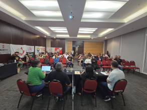 No segundo dia, o Seminário Nacional de Formação Sindical trouxe o tema “Compreender os desafios da conjuntura para estabelecer as ações em defesa dos direitos dos trabalhadores”.
